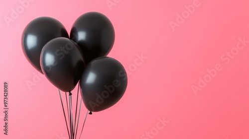 Black balloons on bright solid color background, black friday sale banner, space for text