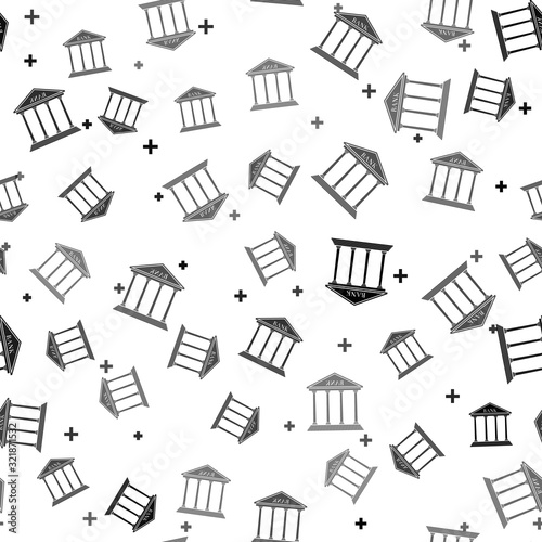 Black Bank building icon isolated seamless pattern on white background. Vector Illustration