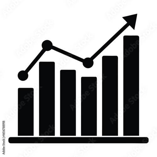 Black bar graph with upward trending line and arrow icon chart bar chart