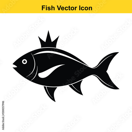 Black beautiful fish Silhouettes isolated on white background Vector illustration.