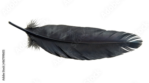 Black bird feather isolated on transparent background