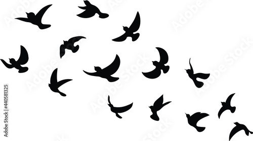 Black Bird Silhouette Against White Background No Sky. Birds from Different parts of World. Common Birds. Bird Icon Vector Illustrations Isolated Doodle.
