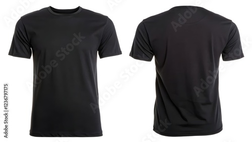 Black Blank T-Shirt Template – Front and Back View on White Background