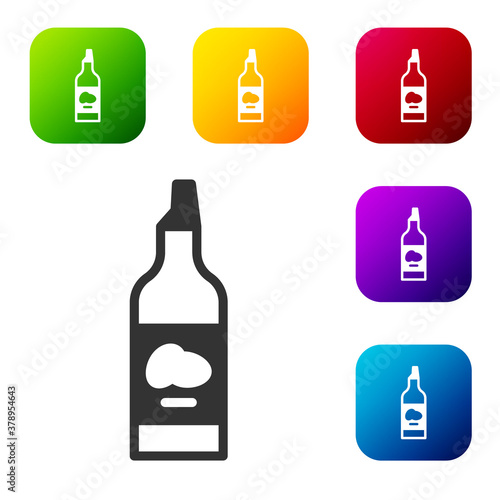Black Bottle of olive oil icon isolated on white background. Jug with olive oil icon. Set icons in color square buttons. Vector.