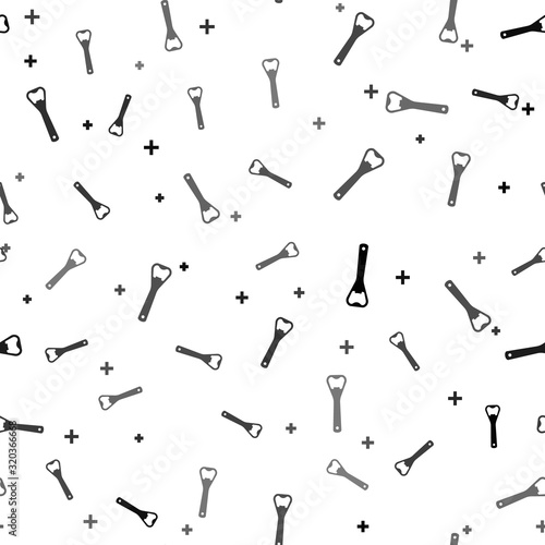 Black Bottle opener icon isolated seamless pattern on white background. Vector Illustration