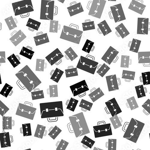 Black Briefcase icon isolated seamless pattern on white background. Business case sign. Business portfolio. Vector