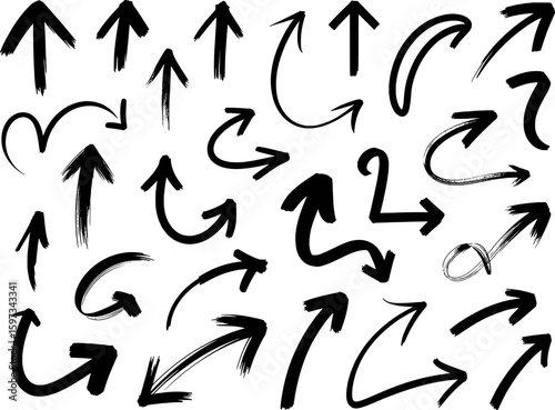 Black brush stroke arrows pointing in various directions vector