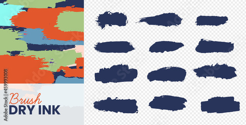 Black brush stroke collection. Dry ink stroke vector Illustrations. Dirty brushes and wide brushes textures