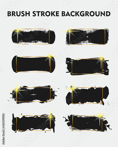 Black Brush Stroke with Gold Rectangle Background Set for Logo, Text, and Image. Flat Abstract Vector Background. Design Element.