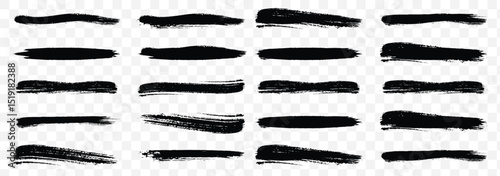 Black brush strokes vector illustration, abstract grunge texture on white background. Artistic design element, paint smear, ink splatter, creative graphic element on Transparent Background. EPS 10.