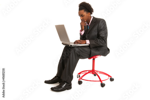 Black business man with laptop