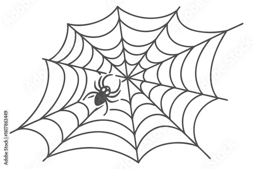 Black cartoon spider on a grey spiderweb arachnid insect