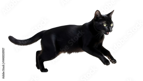 Black cat in various poses isolated on a white background, showcasing playful and relaxed expressions.