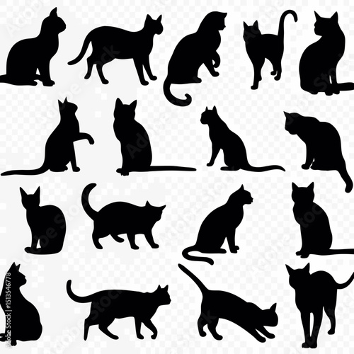 Black Cat Silhouette Set – Vector Animal Shapes and Pet Illustrations