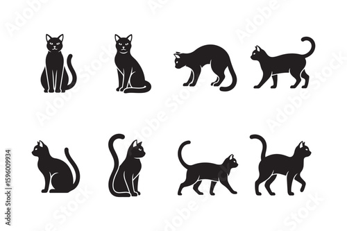 Black Cat Silhouettes in Various Poses on White Background 1