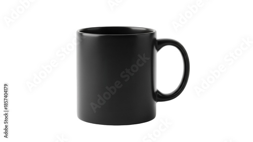 Black ceramic mug isolated PNG, coffee cup for hot drinks on transparent background, kitchenware for beverage and office use