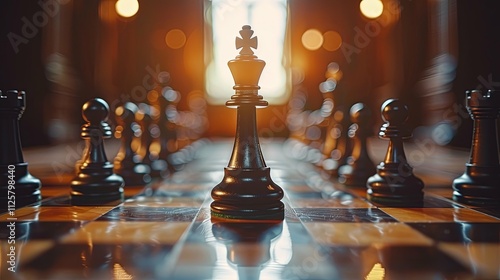 Black Chess King Piece Dominates the Board, Strategy and Leadership Concept