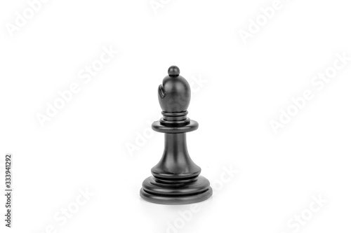 black chess piece elephant isolated on white background. The concept of board games, logic, training for the brain.