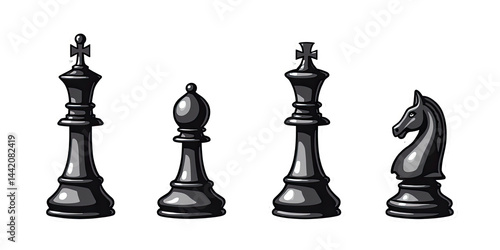 Black Chess Pieces Stickers: King, Queen, Bishop, Knight - Vintage/.
