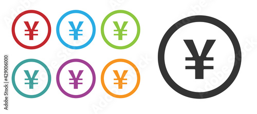 Black Chinese Yuan currency symbol icon isolated on white background. Coin money. Banking currency sign. Cash symbol. Set icons colorful. Vector