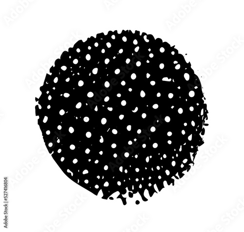 Black circle with white dots inside, minimalistic abstract illustration, isolated on white background.