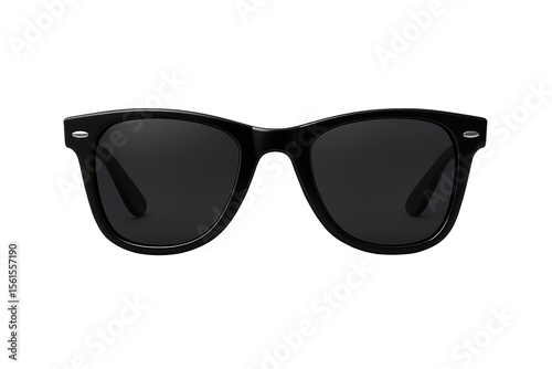Black classic sunglasses with dark lenses isolated on transparent background