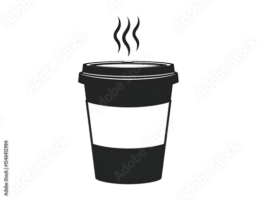 Black Coffee Cup with Steam Illustrating Hot Beverage for Seasonal and Everyday Use in Lifestyle Images