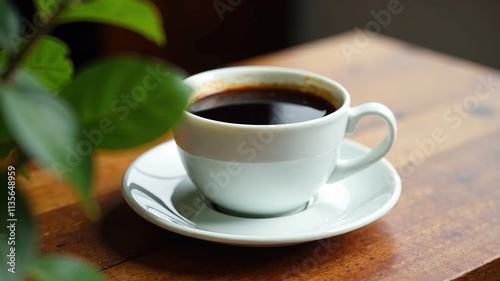 Black Coffee, White Cup, Wooden Table - High-Quality AI Photo