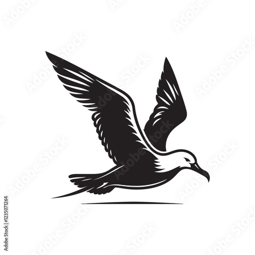 Black Color Albatross silhouette design Vector Illustration, Solid White Background (12).eps