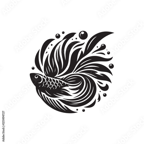 Black Color Flying Fish silhouette design Vector Illustration, Solid White Background (6).eps