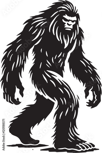 Black Color Mythic Creature Yeti Silhouette Vector Illustration, Solid White Background