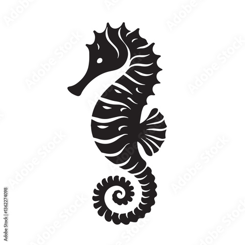 Black Color Seahorse Silhouette Vector Illustration, Solid White Background