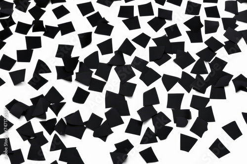 Black Confetti Scatter on White Backdrop