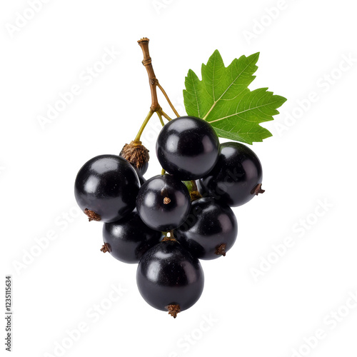 Black Currant, fresh ripe fruit isolated on transparent background, close-up shot