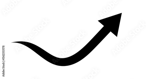 Black curved arrow pointing upward on a white background illustrating growth and progress