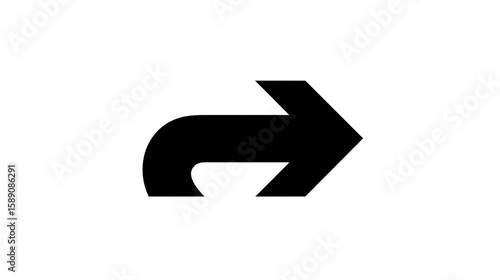 Black curved arrow symbol, white background