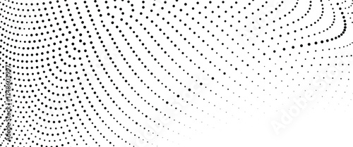 Black curved halftone wave pattern creating elegant dotted gradient flow modern abstract background digital art composition ideal for poster layout and minimal technology inspired visuals