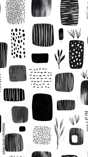 Black Cylinders, Circles, Bars on White Background, Abstract Image, Texture, Pattern, Wallpaper, Cover and Screen of Smartphone, Cell Phone, Computer, Laptop, 9:16 and 16:9 Format