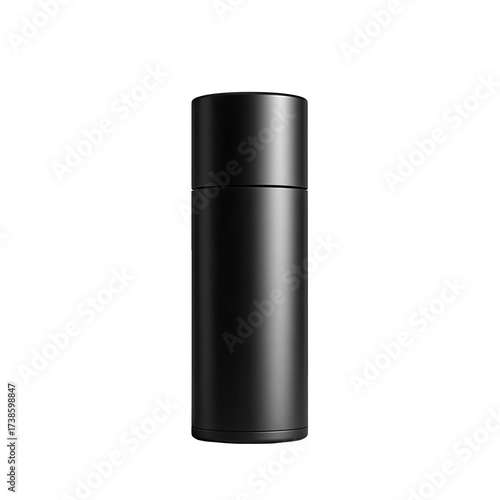 Black cylindrical cosmetic container