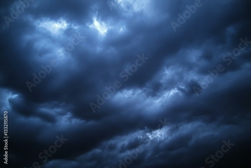 Black dark blue gray sky with heavy clouds. Dramatic background. Storm hurricane wind rain cloudy. Ominous scary creepy.