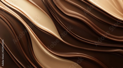 Black dark light pastel dusty pale soft chocolate coffee brown beige abstract background. Silk satin fabric. Curtain drapery line wave.Mocha mousse color 2025.Flat lay, top view table
