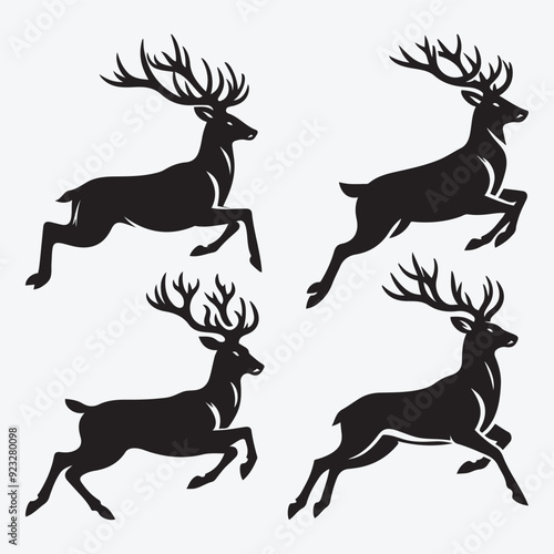 Black Deer Silhouette Bundle Logo Illustration Clipart