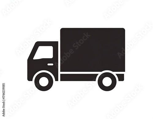 Black delivery truck icon against white background, simple design