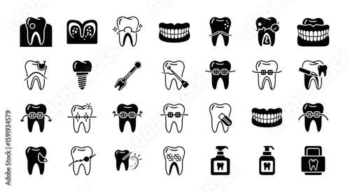 Black Dental Health Icon Set Teeth Condition vector