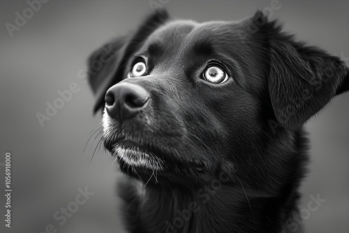Black dog with striking blue eyes gazing thoughtfully outdoors
