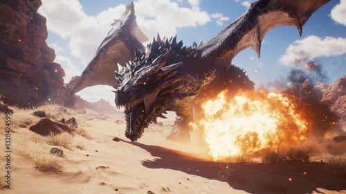 Black dragon fire desert fantasy game artwork