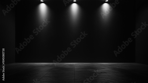 Black empty room with side lights illuminating the walls and floor for displaying products or presentations