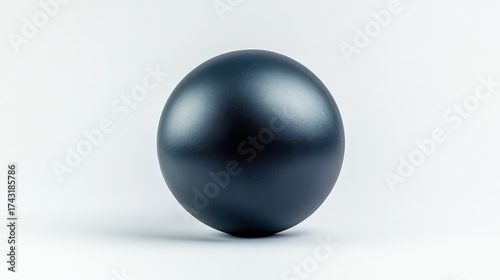 Black exercise ball on a plain background resting quietly in a gym setting during the day