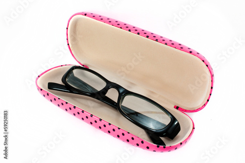 Black Eyeglasses and pink box cover