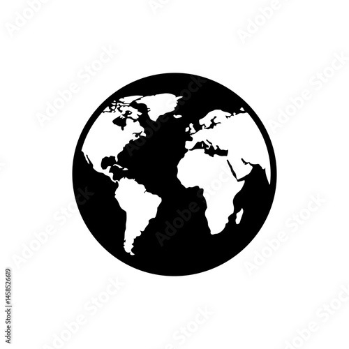 Black Filled Icon of Earth Globe with Continents in Flat World View
